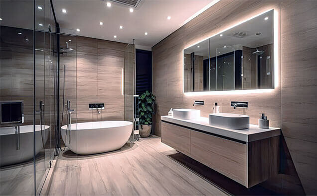Installation of integrated exhaust, heat and light units that provide complete bathroom comfort while efficiently removing steam and moisture.